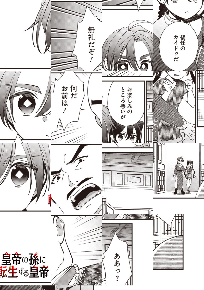 奴隷から成り上がり、一代で帝国を築き上げたティムール。 しかし、120人いる孫は全員無能なようで……このままでは帝国が滅びてしまう! ティムールは皇帝である自分の孫に転生することを思いつき…!? 成り上がりの皇帝が自分の孫に生まれ変わる! 皇族転生無双ストーリー開幕!!