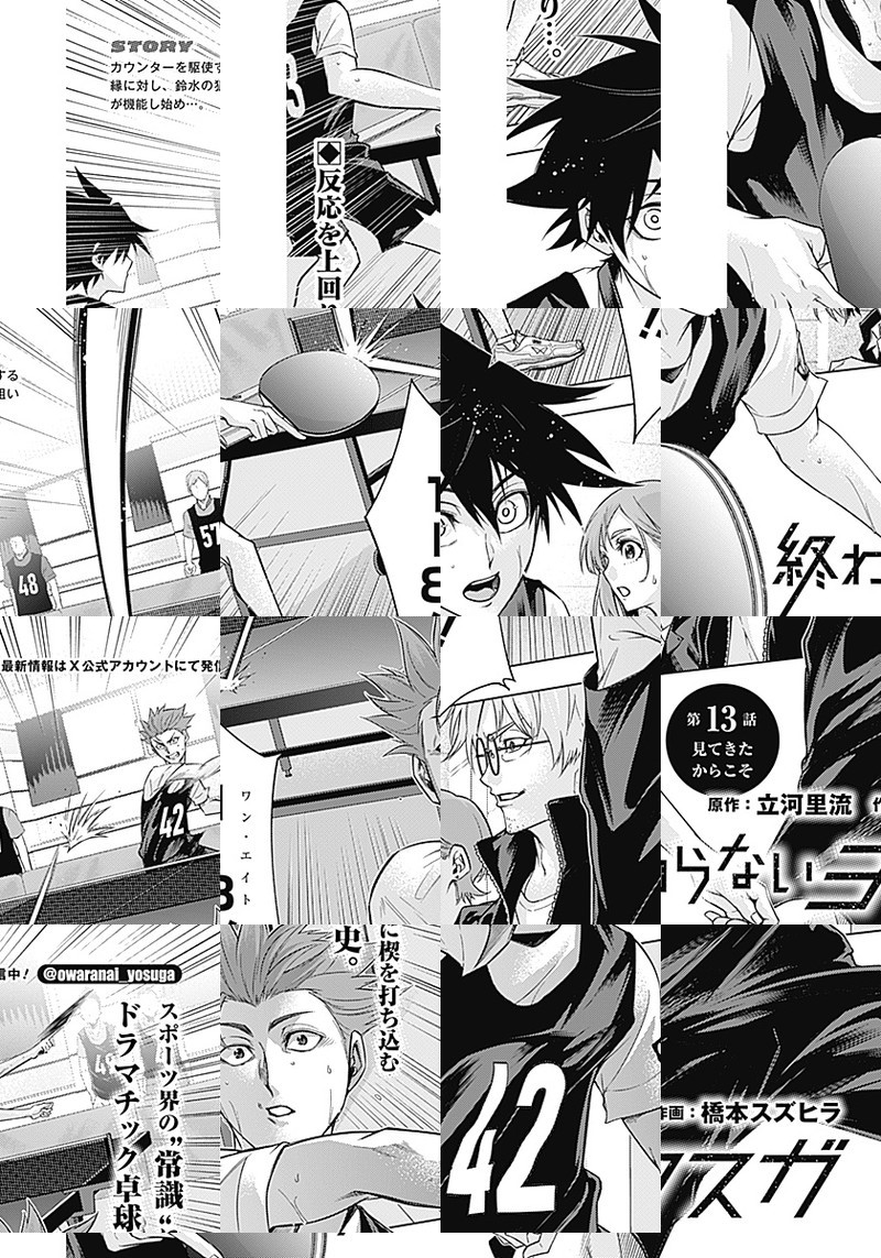 6歳までに始めていることが一流の卓球選手になる最低条件と言われている現代において、元日本代表の武嶋はその“常識”を打ち壊せる人物を探していた。そんなとき人との繋がりを求め卓球を始めた深堂縁と出会い、その不純物のないまっすぐな感情に可能性を見出していき――。元日本代表と孤独な少年が紡ぎだす、スポーツ界の“常識”に楔を打ち込むドラマチック卓球史。