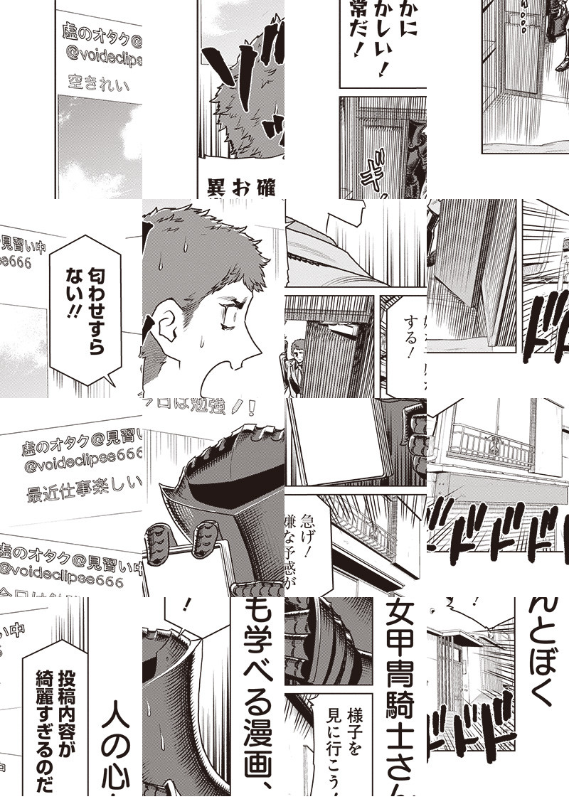 どこにでもいるオタクなサラリーマンの「ぼく」。 ちょっと違うところといえば、「女甲冑騎士さん」とルームシェアをしていること。 千駄ヶ谷を舞台に繰り広げられる新感覚アーバンファンタジー!!