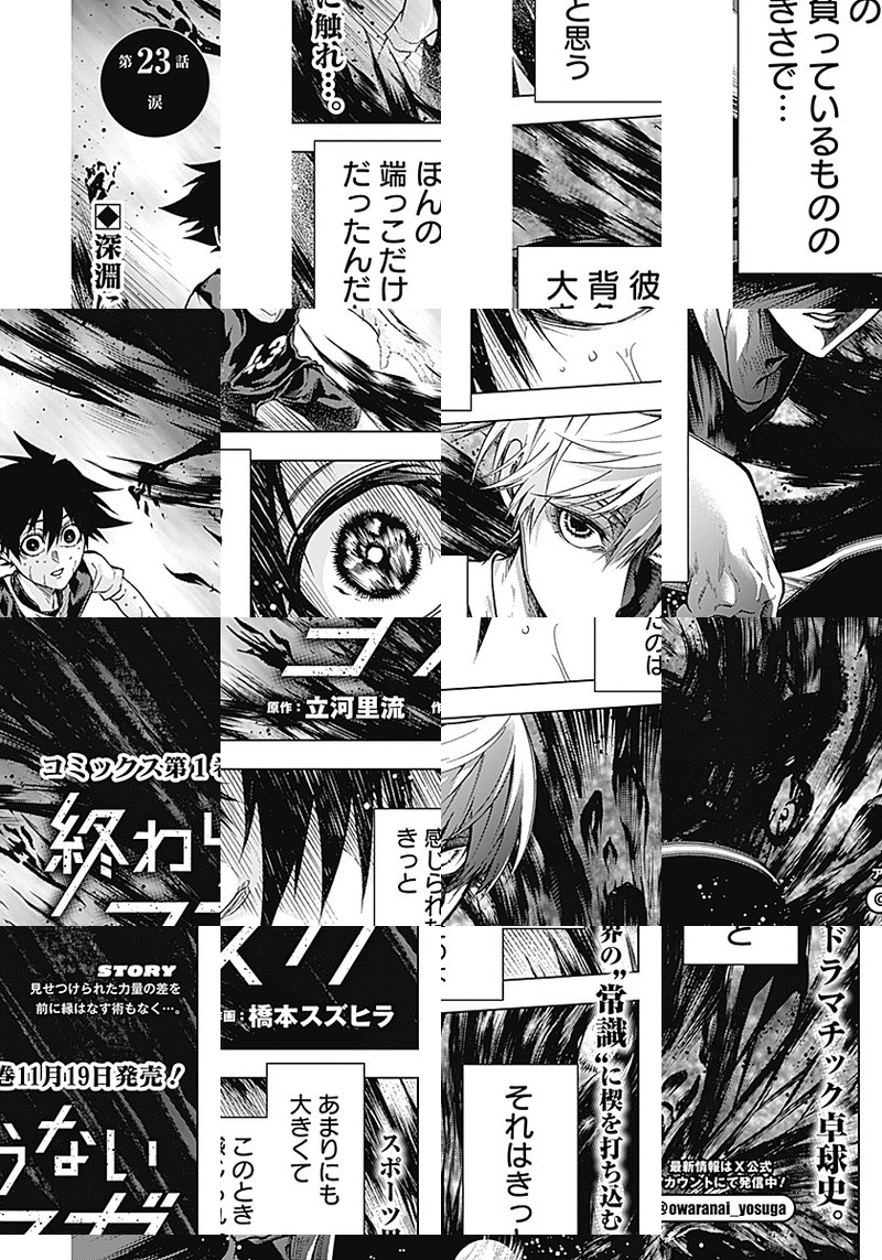 6歳までに始めていることが一流の卓球選手になる最低条件と言われている現代において、元日本代表の武嶋はその“常識”を打ち壊せる人物を探していた。そんなとき人との繋がりを求め卓球を始めた深堂縁と出会い、その不純物のないまっすぐな感情に可能性を見出していき――。元日本代表と孤独な少年が紡ぎだす、スポーツ界の“常識”に楔を打ち込むドラマチック卓球史。