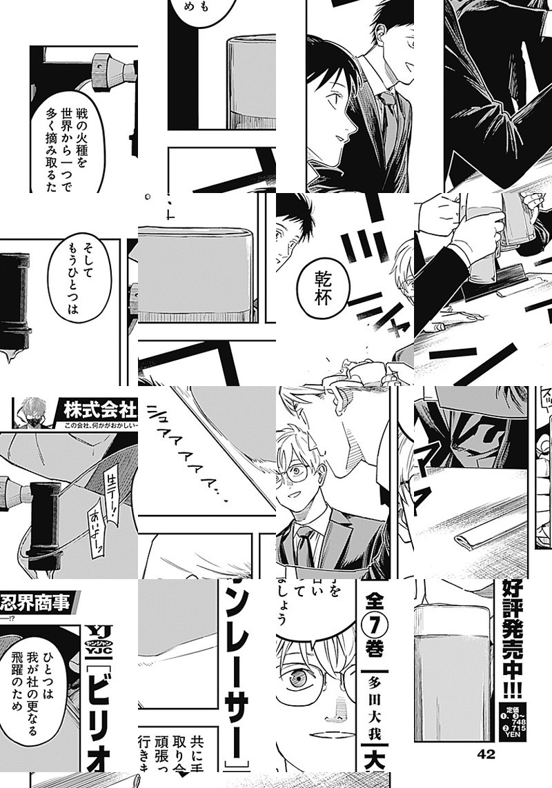 株式会社忍界商事は、「影から支える豊かな暮らし」を理念として、 国民の生活に根差す様々な分野で事業を展開しており、 現代日本の超人気総合商社として広く知られている。 そんな会社の社員である服部正三は、一般的な営業成績は今一つだが… “忍務”では圧倒的な実力を誇っており⁉ 何かがおかしい現代サラリーマンたちの、ごくありふれた日常を描く物語。