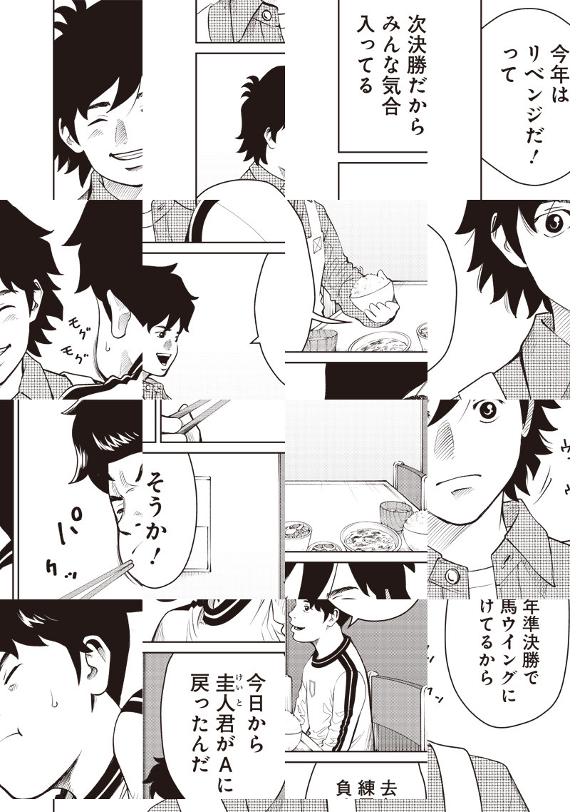 しがないサラリーマンの天野仁輔はある日、 妻である奈々から離婚を切り出される。 息子である翠と共に残された二人は、 サッカーをきっかけに新たな人生の門出を迎える。 夢に向き合う人、かつてそうであった人に捧げる、 新機軸“親子サッカー人生譚”堂々開幕!!