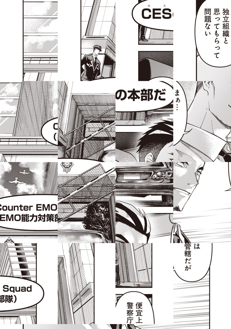 危険を警戒し、目立たず生きる高校生・荒倉アラト。 ある日突然異能力者・好綺羅羅に襲われ、日常は 崩壊する。強い感情が異能力に転化される「EMO能力者」どうしの バトルに巻き込まれたアラトは、バリアという攻撃力0の能力で戦い抜く事が出来るのか…!?