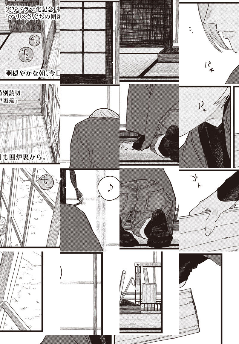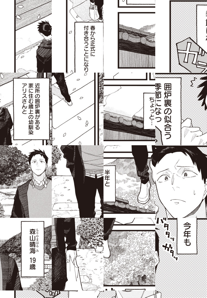 〈ウルトラジャンプ連載作品〉 10年ぶりに東京から地元に帰ってきて、囲炉裏つきの古民家にひとりで暮らすアリスさん。 久しぶりの再会にドキドキしていた幼馴染の晴海くんでしたが、アリスさんと囲む囲炉裏は昔と同じようにあったかくて…。 おいしくてあったかい、幼馴染×囲炉裏ごはん。