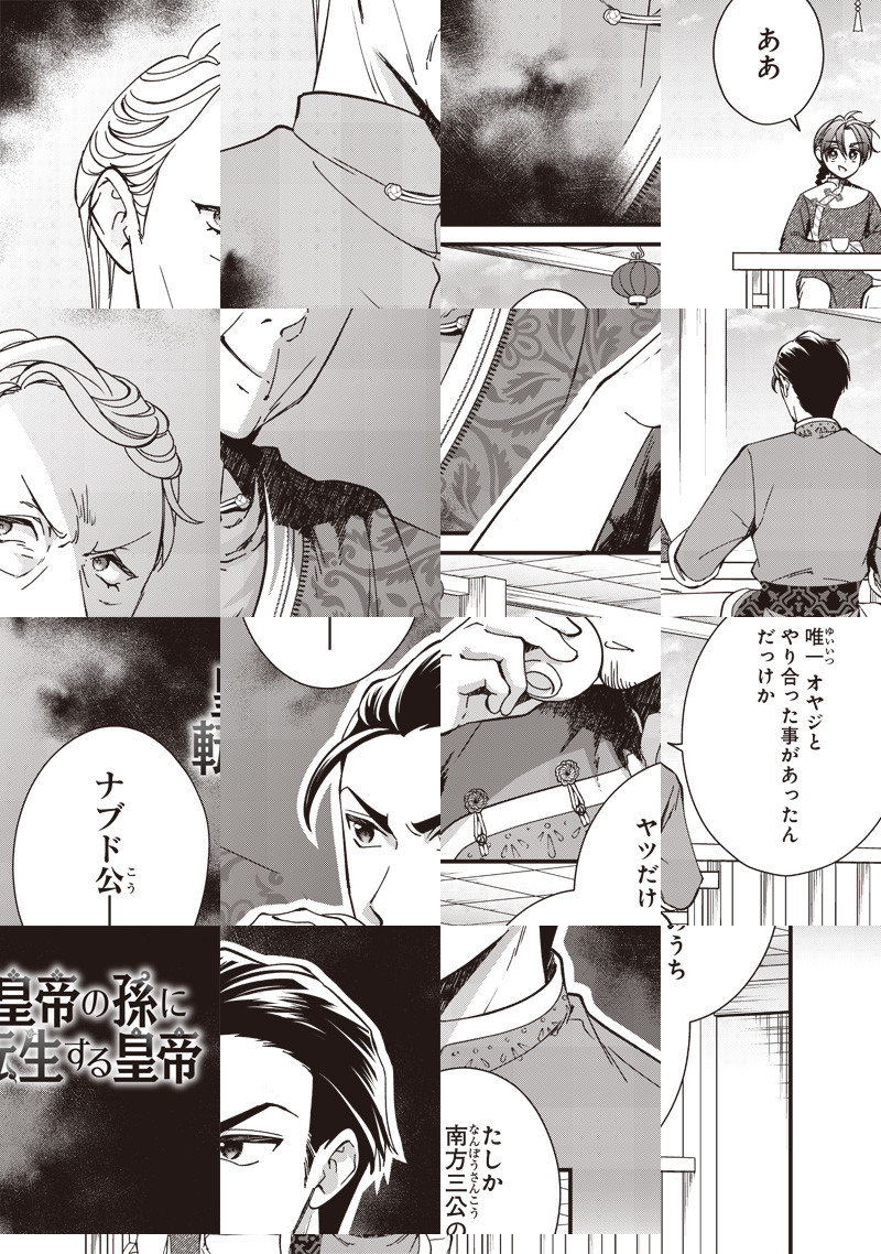 奴隷から成り上がり、一代で帝国を築き上げたティムール。 しかし、120人いる孫は全員無能なようで……このままでは帝国が滅びてしまう! ティムールは皇帝である自分の孫に転生することを思いつき…!? 成り上がりの皇帝が自分の孫に生まれ変わる! 皇族転生無双ストーリー開幕!!