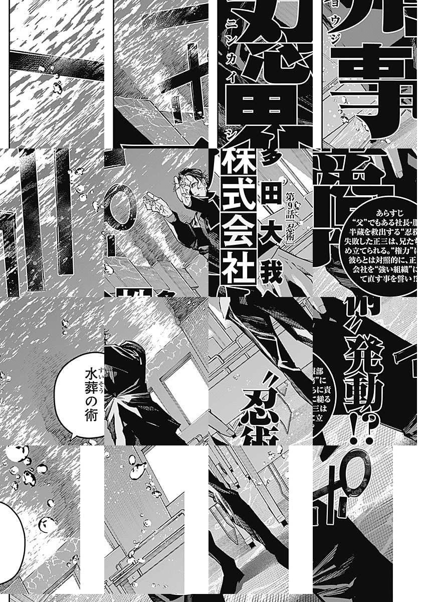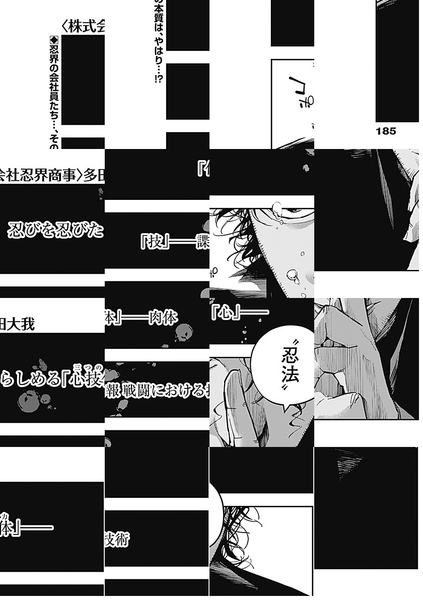 株式会社忍界商事は、「影から支える豊かな暮らし」を理念として、 国民の生活に根差す様々な分野で事業を展開しており、 現代日本の超人気総合商社として広く知られている。 そんな会社の社員である服部正三は、一般的な営業成績は今一つだが… “忍務”では圧倒的な実力を誇っており⁉ 何かがおかしい現代サラリーマンたちの、ごくありふれた日常を描く物語。