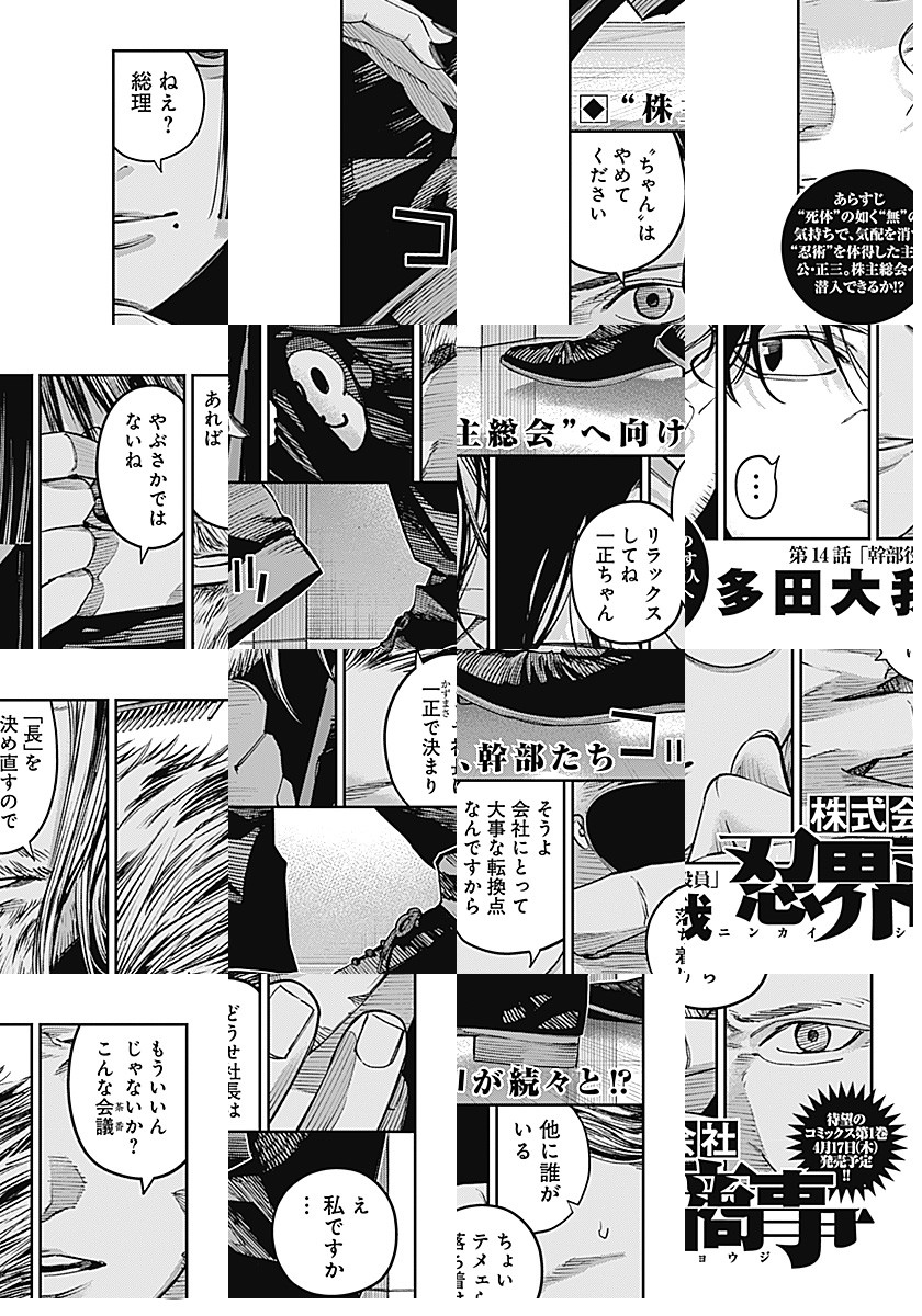 株式会社忍界商事は、「影から支える豊かな暮らし」を理念として、 国民の生活に根差す様々な分野で事業を展開しており、 現代日本の超人気総合商社として広く知られている。 そんな会社の社員である服部正三は、一般的な営業成績は今一つだが… “忍務”では圧倒的な実力を誇っており⁉ 何かがおかしい現代サラリーマンたちの、ごくありふれた日常を描く物語。