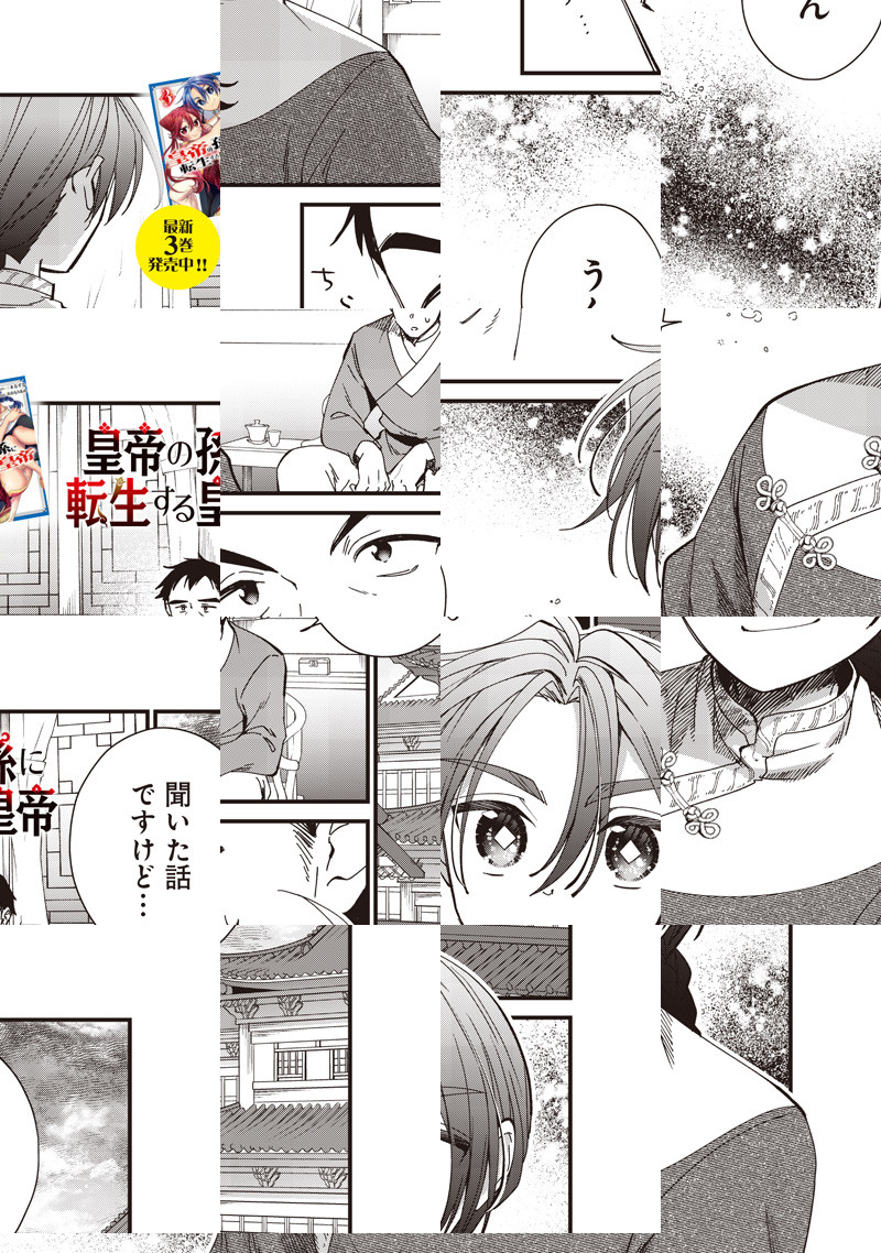 奴隷から成り上がり、一代で帝国を築き上げたティムール。 しかし、120人いる孫は全員無能なようで……このままでは帝国が滅びてしまう! ティムールは皇帝である自分の孫に転生することを思いつき…!? 成り上がりの皇帝が自分の孫に生まれ変わる! 皇族転生無双ストーリー開幕!!
