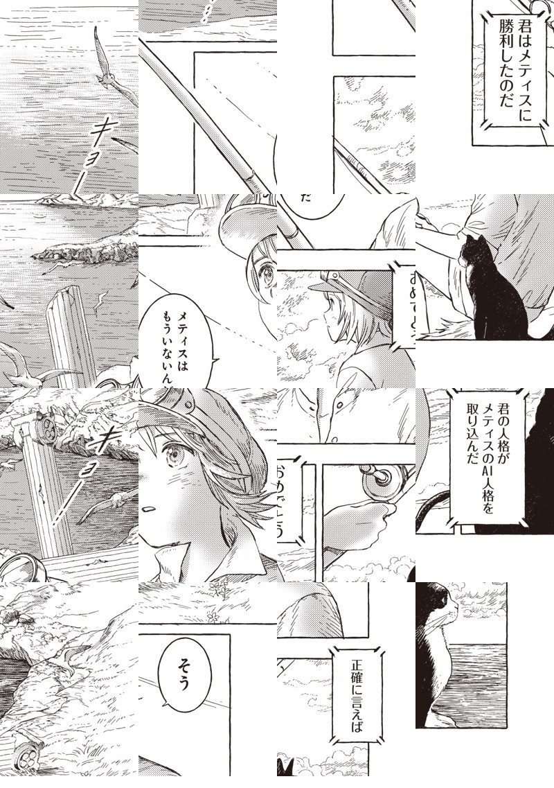 電気人形のアンジュと電気人形に育てられた人間のエリオ。自分以外の人間を知らないエリオに外の世界を見せる為、2人は旅に出る――。 未来なのに懐かしく、機械なのに温かい。近未来でスチームパンクな冒険が始まる!