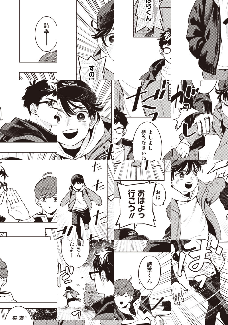 仕事が上手くいかない春原は、休憩中に立ち寄った公園で1人の少年と出会う。 目を凝らせば都会にも溢れている生き物たち。童心に帰る、都会の生き物観察スタート!