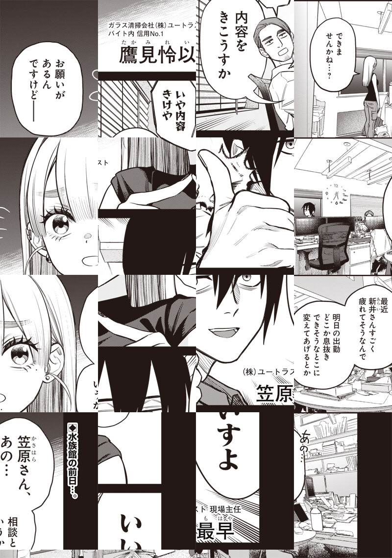 ビル清掃会社で働き始めた元高校教師の新井は、ついに高所作業を任されることに。指導役になったのは年下の先輩・鷹見さん。高所を恐れつつもゴンドラで繰り出したはいいが、彼女の言動にドキドキは増してしまい…?