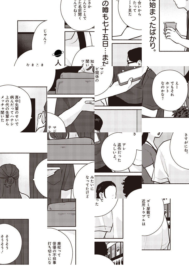 高校時代の同級生に誘われてお笑いトリオを組んでいた遊星だったが、あるきっかけから周囲の人間関係が絡まりもつれ始め…。期待の俊英が描く、創造と衝突の群像劇。