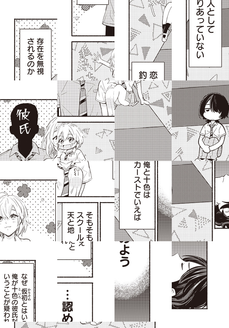 オタク男子・真園正市と、学校一の美少女・来海十色は腐れ縁の幼馴染。ある日、恋愛関係のトラブルに嫌気がさした十色に頼まれ、正市は彼氏役を演じることに。元々ずっと一緒にいるため、カップルのフリも簡単だと思った二人だが、相性抜群の幼馴染が偽の恋人で終わるはずがなく――