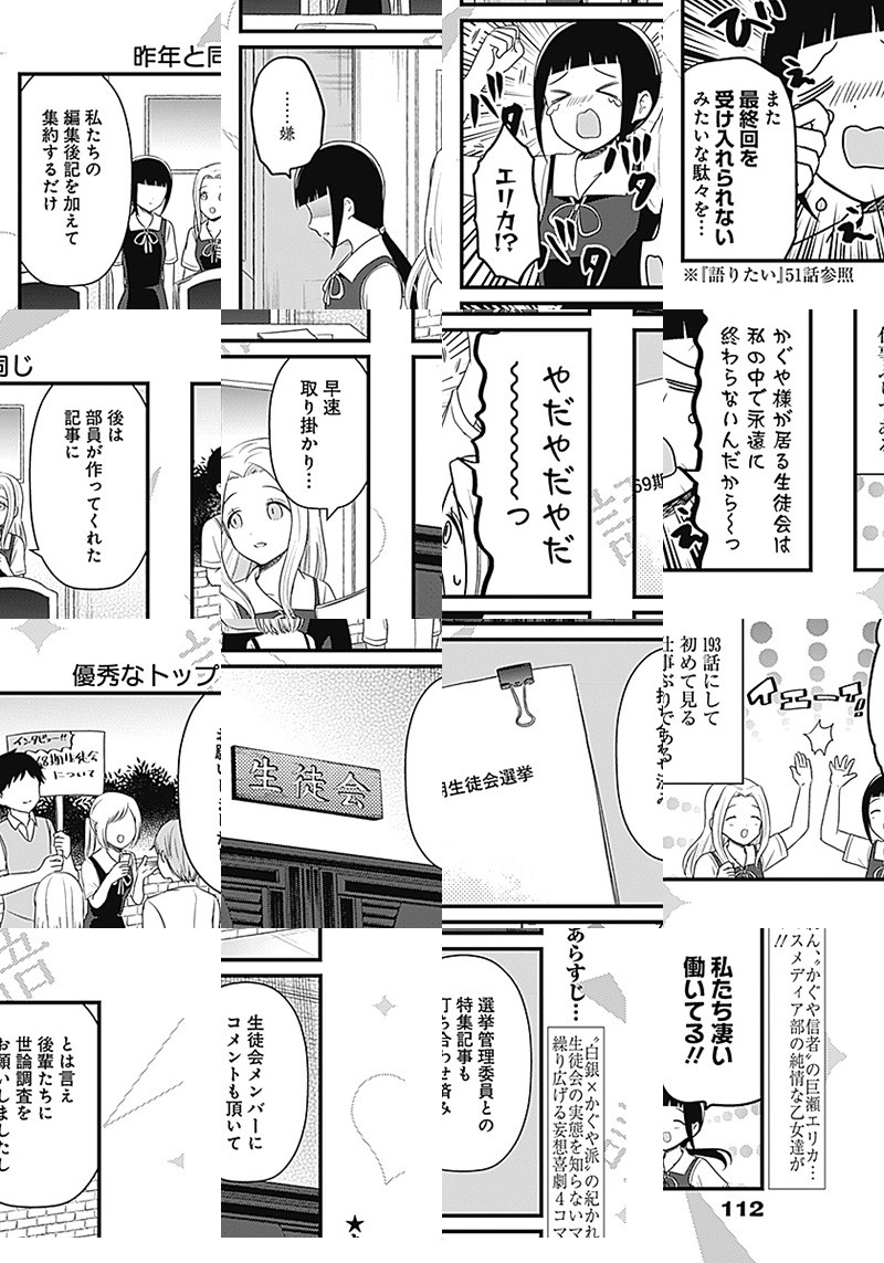 『かぐや様は告らせたい〜天才たちの恋愛頭脳戦〜』TVアニメ化記念、週刊ヤングジャンプ本誌でもスピンオフ作品が連載開始しました。 生徒会の実態を知らない、マスメディア部のメンバーが繰り広げる妄想喜劇4コマ!!