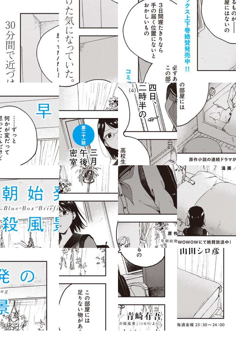 誰もいないはずの始発の電車で、普段あまり話さないクラスメイト・殺風景と遭遇してしまった加藤木。 気まずい空気の中、何故こんな時間に遭遇してしまったのか、探り合いが始まり…。 最注目のミステリー作家が贈る、小さな謎と気まずさをはらんだ五つの青春密室劇をコミカライズ!