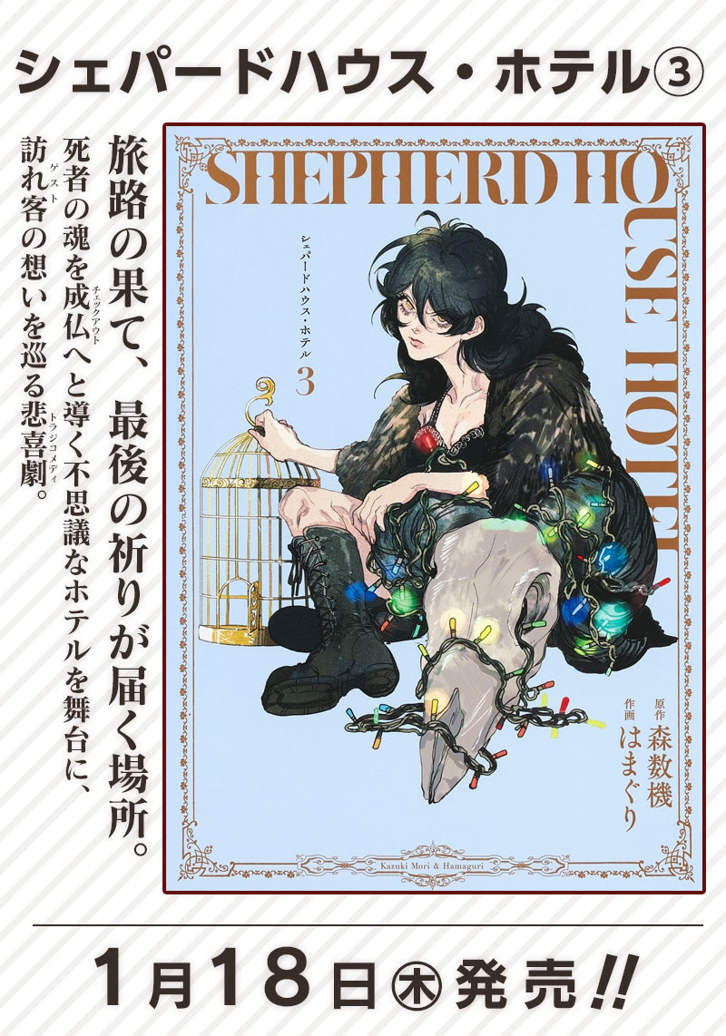 〈ウルトラジャンプ連載作品〉 すべてのお客様に、健やかなる休息を。 カナダの湖畔に佇む心霊ホテルを巡る悲しくも優しい悲喜劇開幕。 ゲストをお迎えするのはフロントマン・ホンダとメイド・モア。 たった二人の従業員で供されるゲストへのサービスとは?