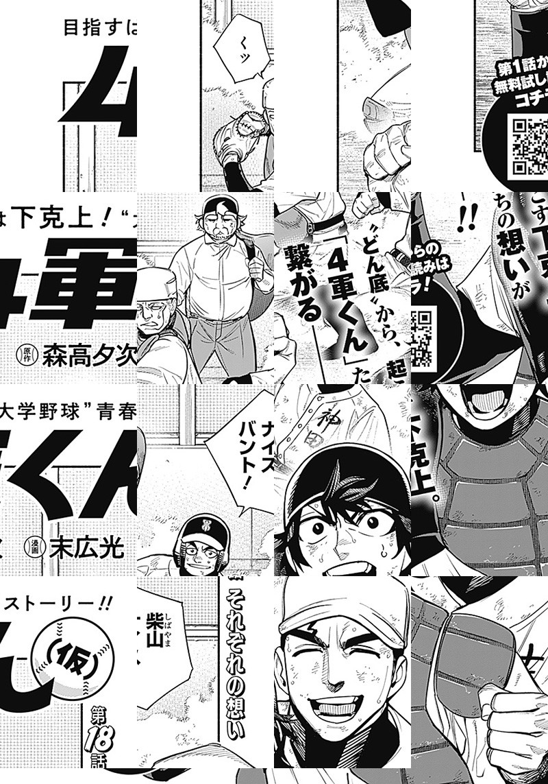 都立高校ながらチームを東東京大会ベスト4にまで導き、 "都立の星"と呼ばれた高校球児・荻島航平。 彼が卒業後の進路として選んだのは神宮球場を聖地とする "都心6大学リーグ"の一つ、池袋大学だった。 ところが入部初日、彼に下されたのはまさかの最下層"4軍"宣告…!? 目指すは下克上!"大学野球"青春ストーリー、開幕!