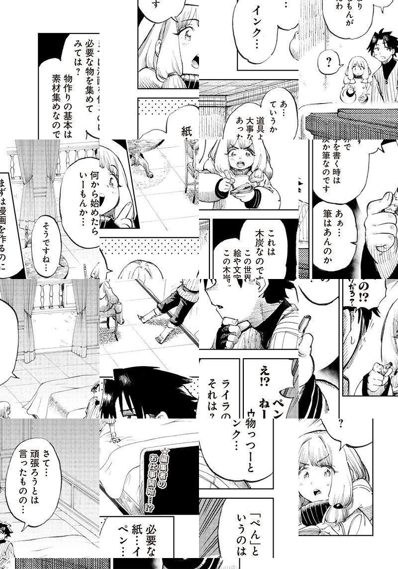 冴えない漫画編集者・一ノ瀬浩輝は、入稿を間際に控えた新連載第1話の原稿を持ったまま、異世界に召喚されてしまう。入稿に間に合わない事が確定する中、召喚士ライラに「救世主様」と呼ばれて…!?