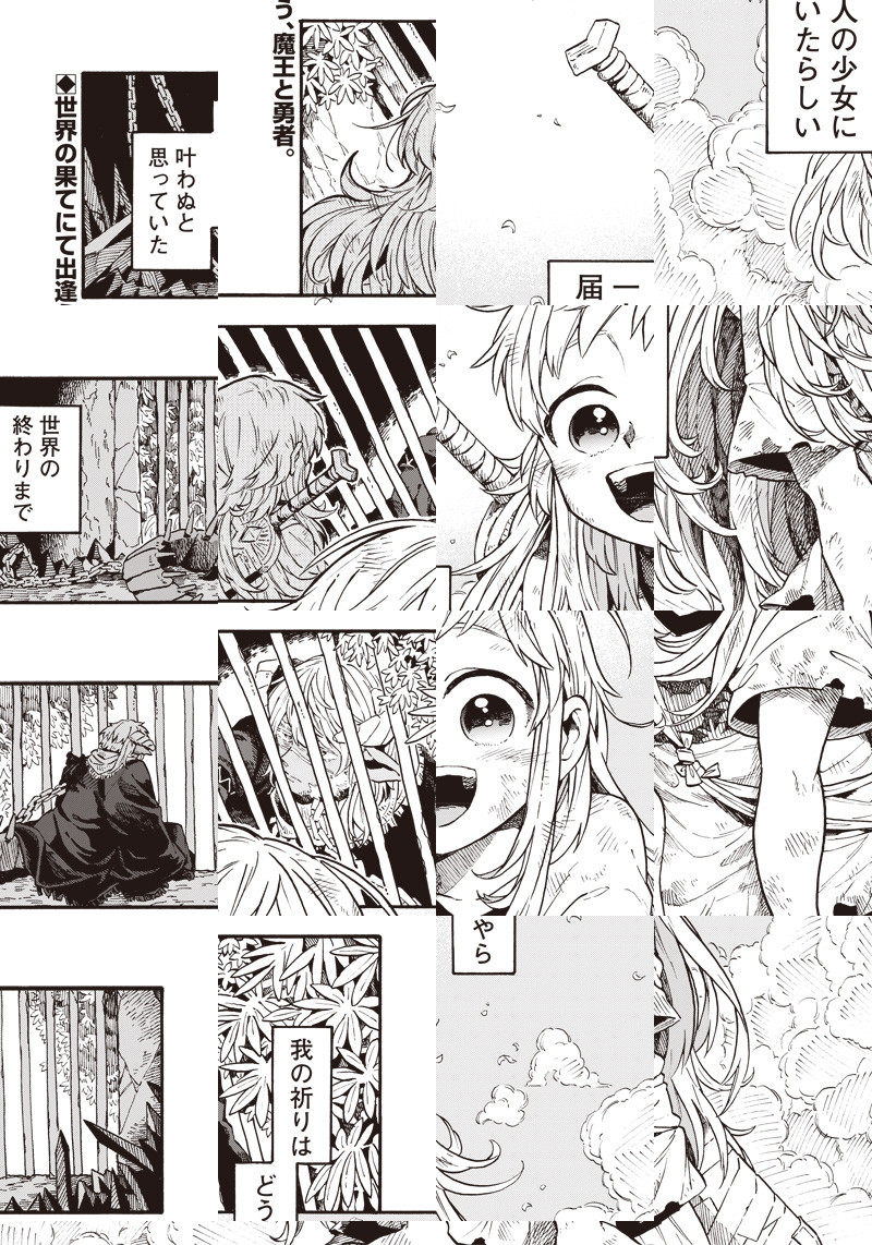 ”おじロリてぇてぇ”の伝道師、『退魔師と悪魔ちゃん』(KADOKAWA)の作者、トナミショウが送る特別読切39P!! 陰気な魔王(おじさん)×陽気な勇者(少女)による終末世界旅行記――。