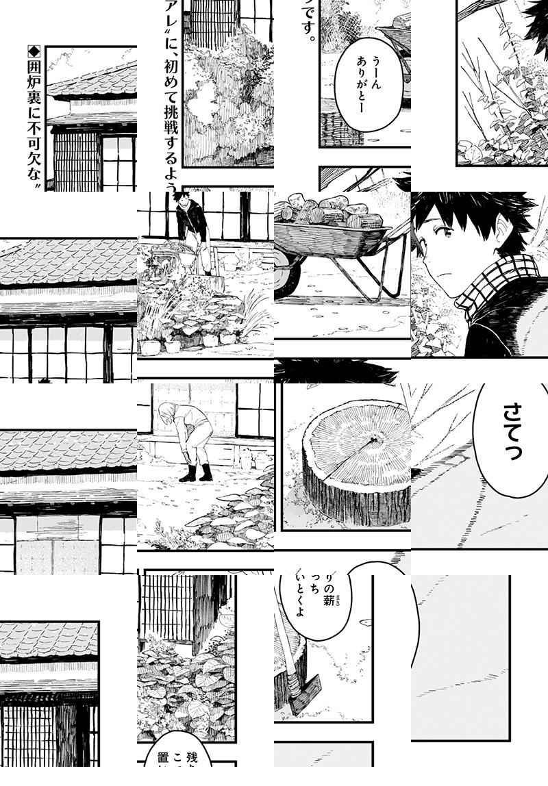 〈ウルトラジャンプ連載作品〉 10年ぶりに東京から地元に帰ってきて、囲炉裏つきの古民家にひとりで暮らすアリスさん。 久しぶりの再会にドキドキしていた幼馴染の晴海くんでしたが、アリスさんと囲む囲炉裏は昔と同じようにあったかくて…。 おいしくてあったかい、幼馴染×囲炉裏ごはん。