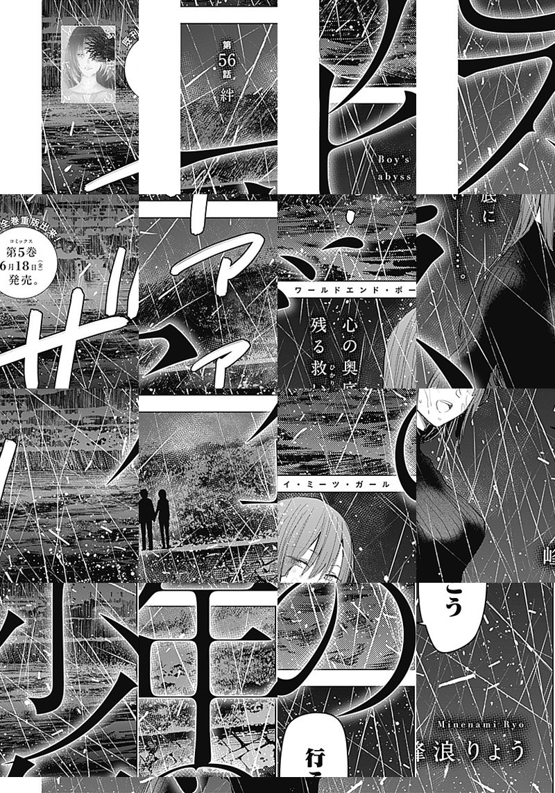 何もない町、変わるはずもない日々の中で、高校生の黒瀬令児は、“ただ”生きていた。家族、将来の夢、幼馴染。そのどれもが彼をこの町に縛り付けている。このまま“ただ”生きていく、そう思っていた。彼女に出会うまでは――。 生きることに希望はあるのか。この先に光はあるのか。“今”を映し出すワールドエンド・ボーイミーツガール、開幕――!!