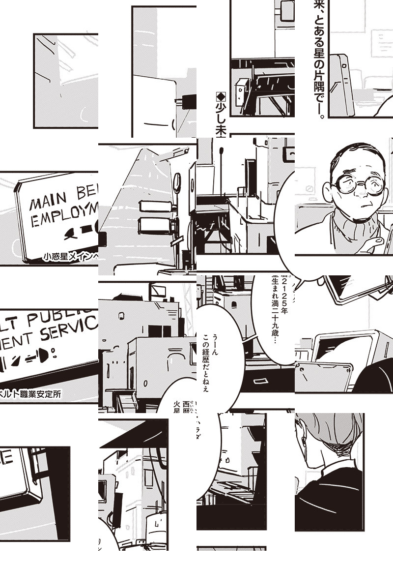 火星生まれのリンは求職中のパイロット。 職安から戻ると住居代わりの船に不法侵入者が!! それは職探しにも困る暮らしの原因を作ったシェイだった。 イヤミの応酬から始まった3年ぶりの再会。シェイの言い分は……? (ウルトラジャンプ2021年7月号掲載)