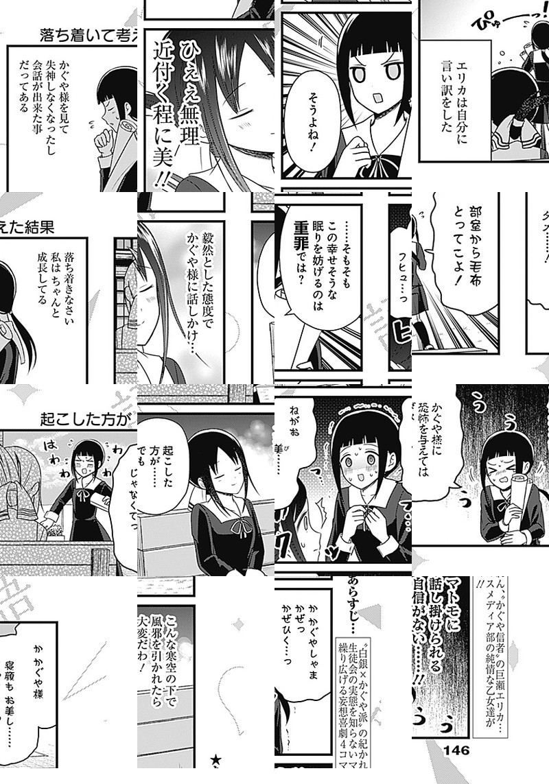 『かぐや様は告らせたい〜天才たちの恋愛頭脳戦〜』TVアニメ化記念、週刊ヤングジャンプ本誌でもスピンオフ作品が連載開始しました。 生徒会の実態を知らない、マスメディア部のメンバーが繰り広げる妄想喜劇4コマ!!
