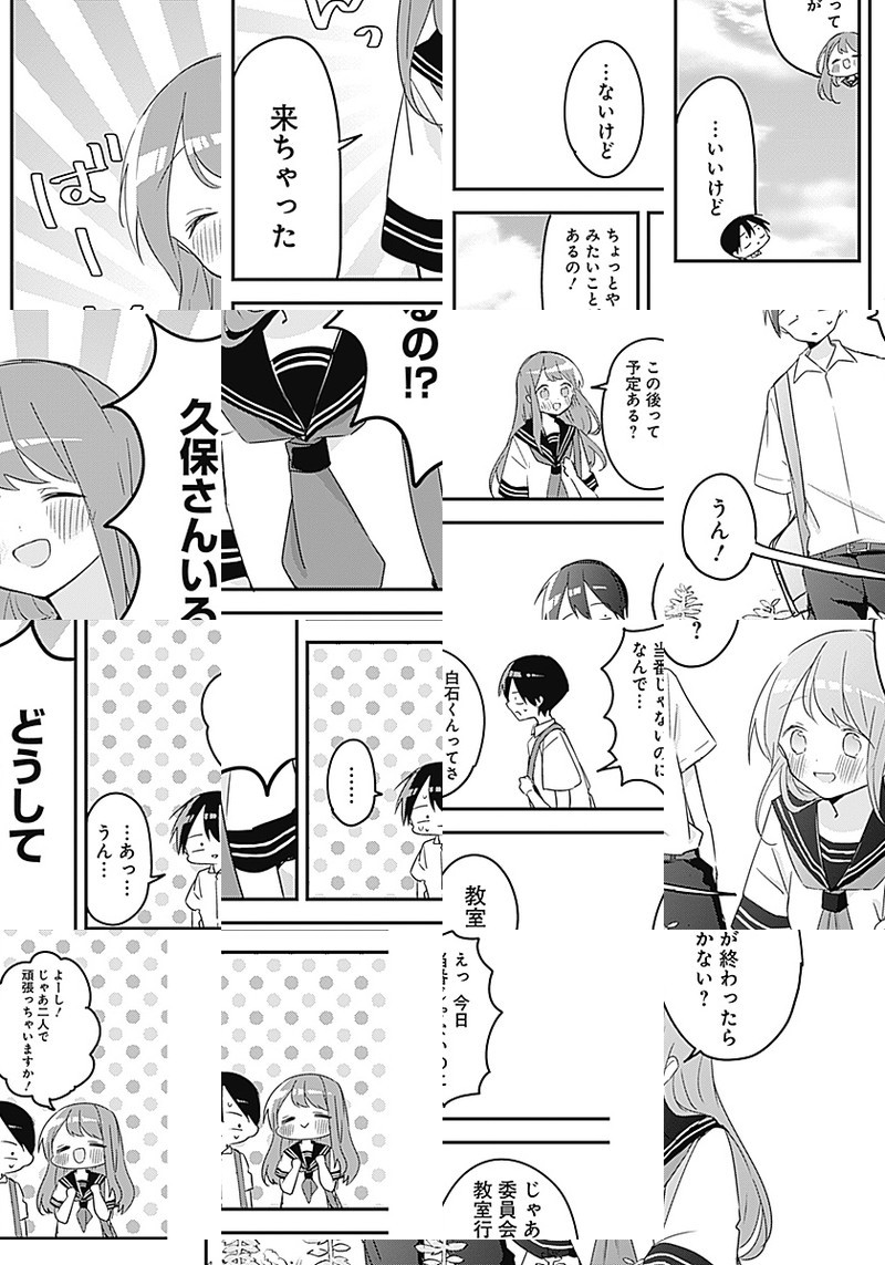 高校1年生・白石純太は、隣に居ても気づかれない、集合写真に写っているのに欠席だと思われて顔写真を合成される、そんな存在感ゼロの"モブ"男子。 ところがクラスメートの"ヒロイン級"美少女・久保さんだけは彼を目ざとく見つけて、今日もちょっかいをかけにやってくる。 誰だって、誰かの特別になれる。でも、その感情に"恋"と名がつくには、まだ二人は少しだけ幼い。 "ラブコメディ"の2歩手前。ヒロイン女子×モブ男子の思春期スイートコメディ。