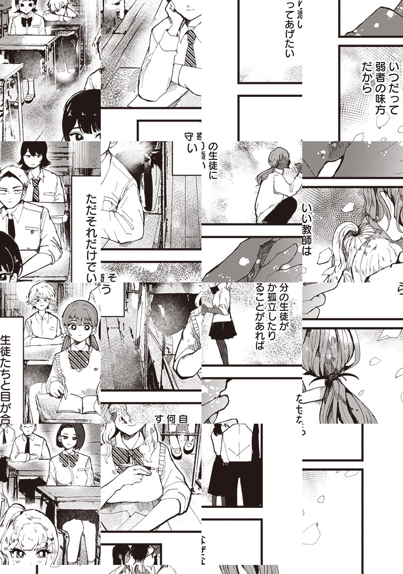 〈ウルトラジャンプ連載作品〉 とある田舎の公立高校、河鹿原高校。2年C組は荒れていた。 生徒達は担任教師である荻野を迫害し、それを最大の娯楽としていた。 日々絶望する荻野だが、彼女には日課があった。 それは不登校の生徒に手紙を書くこと。 自身のクラスが希望に満ちた素敵なクラスだと自身の理想を手紙にぶつけること。 そのときだけ彼女は“素敵な教師”でいられるのだった。 そんなある日、手紙を出していた不登校生・夜嵐が学校に現れた。 嘘がばれることを焦る荻野に彼女は言う。 『私、先生を助けに来たの』 ここから彼女達の“教育”が始まった──。