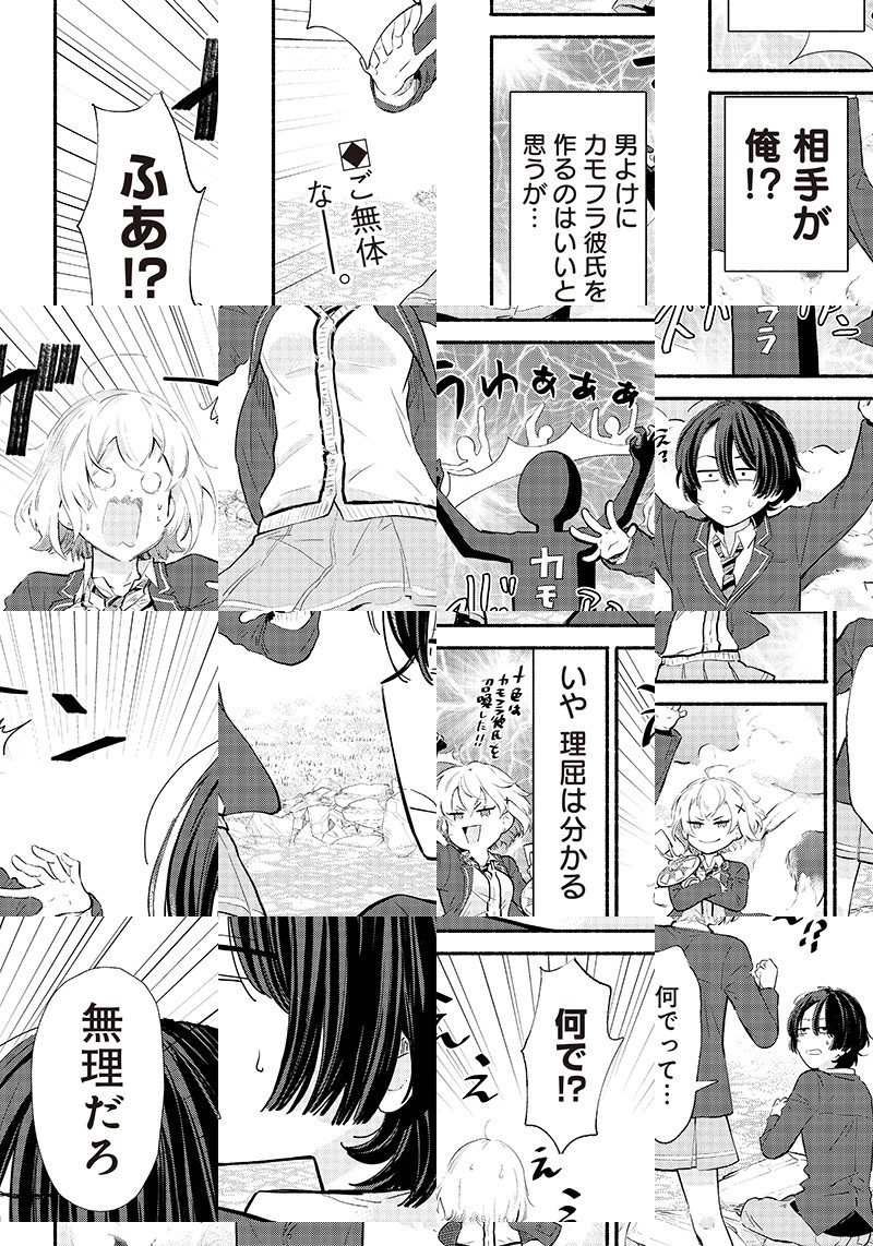 オタク男子・真園正市と、学校一の美少女・来海十色は腐れ縁の幼馴染。ある日、恋愛関係のトラブルに嫌気がさした十色に頼まれ、正市は彼氏役を演じることに。元々ずっと一緒にいるため、カップルのフリも簡単だと思った二人だが、相性抜群の幼馴染が偽の恋人で終わるはずがなく――