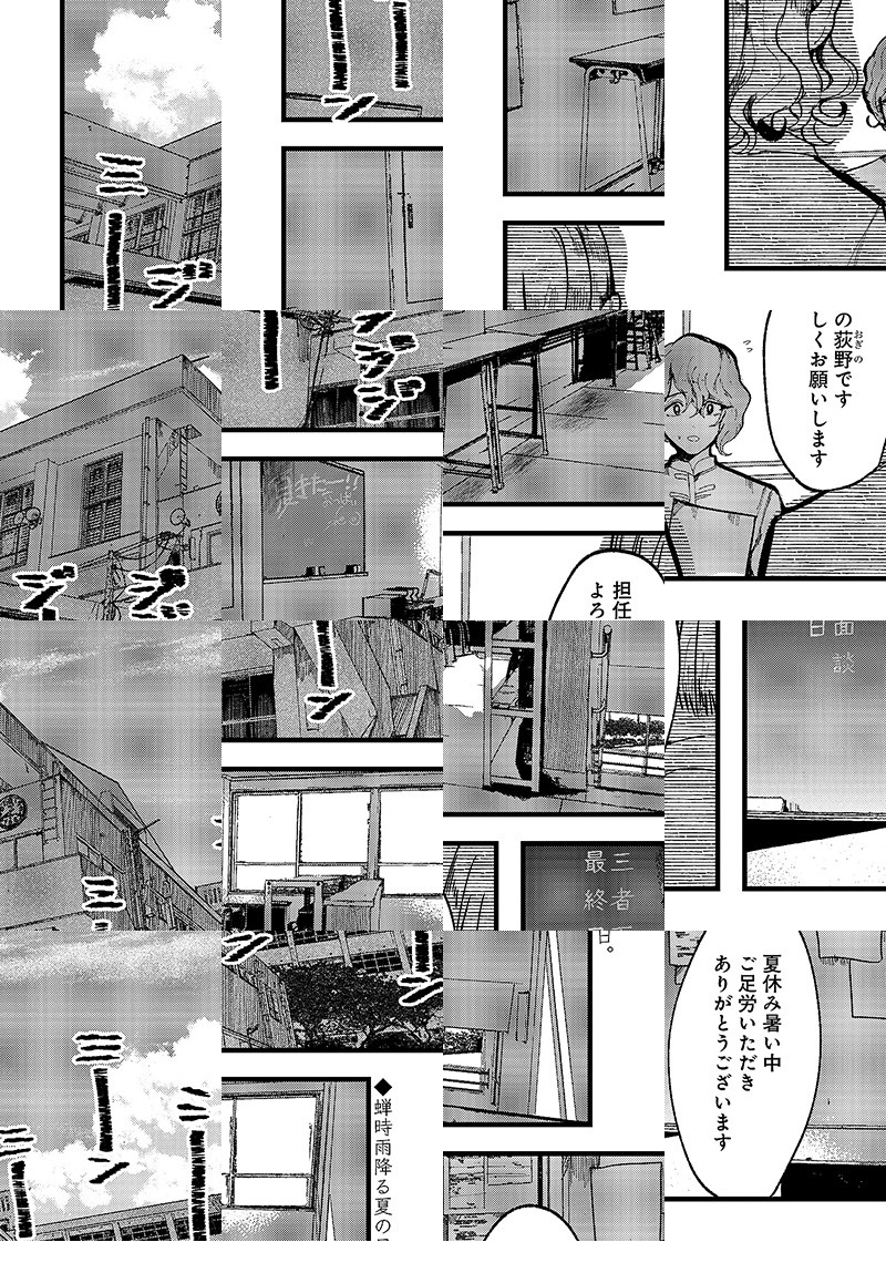 〈ウルトラジャンプ連載作品〉 とある田舎の公立高校、河鹿原高校。2年C組は荒れていた。 生徒達は担任教師である荻野を迫害し、それを最大の娯楽としていた。 日々絶望する荻野だが、彼女には日課があった。 それは不登校の生徒に手紙を書くこと。 自身のクラスが希望に満ちた素敵なクラスだと自身の理想を手紙にぶつけること。 そのときだけ彼女は“素敵な教師”でいられるのだった。 そんなある日、手紙を出していた不登校生・夜嵐が学校に現れた。 嘘がばれることを焦る荻野に彼女は言う。 『私、先生を助けに来たの』 ここから彼女達の“教育”が始まった──。