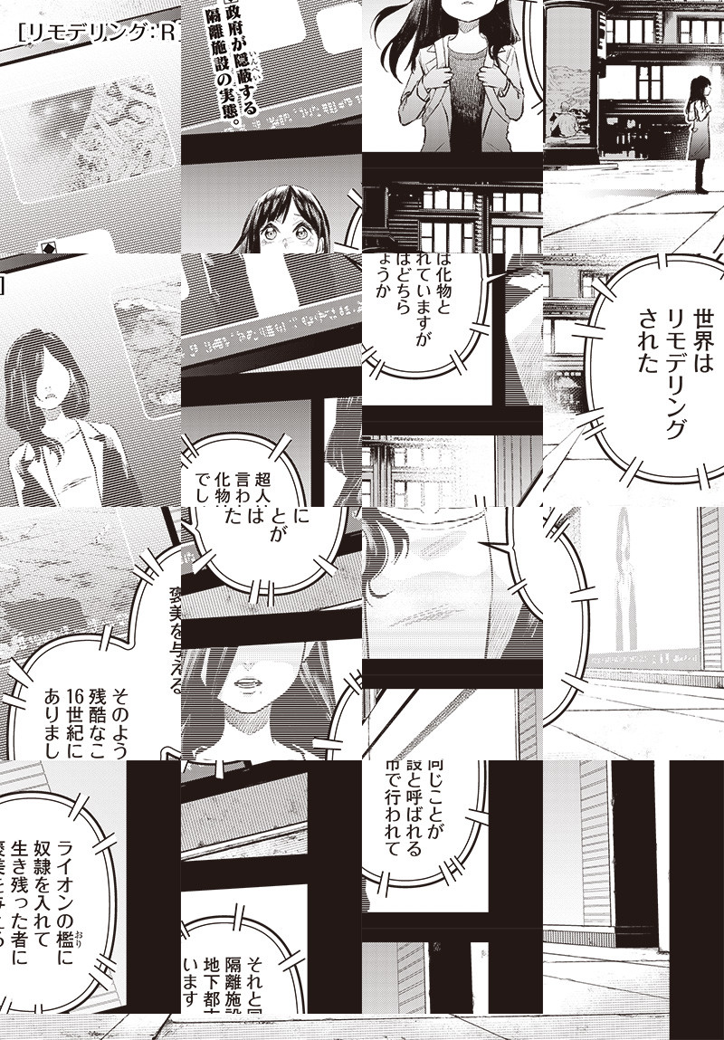 〈ウルトラジャンプ連載作品〉 かつて異能の力を有し、人々を恐怖に陥れた“超人”に科学技術 「リモデリング」が勝利した世界。 そこでは超人への過剰なまでの差別が満ち溢れていた。 “超人”であることを隠し生きる少女・リアンナは、ある日正体がバレ、謎の地下隔離施設へと囚われてしまう。 そこで行われていたのは人間達による超人殺戮ショー「リモデリングバトル」だった──。