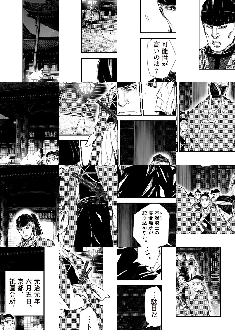 西暦2205年。「歴史修正主義者」による過去への攻撃が始まった。 歴史の改変を防ぐため、時の政府により「審神者(さにわ)」が過去に遣わされた。 審神者によって励起されたのは、刀剣に宿る付喪神「刀剣男士」。 彼らは歴史を守るため戦いへと身を投じていくのであった。 審神者から刀剣男士たちに出陣の命が下った。 蜂須賀虎徹を隊長に加州清光、大和守安定、和泉守兼定、堀川国広、長曽祢虎徹という 編成が組まれる。 蜂須賀虎徹は贋作である長曽祢虎徹の存在に反発する。 舞台は、元治元年。 歴史修正主義者の標的は――新撰組。 沖田総司の刀であった加州清光と大和守安定、土方歳三の刀であった和泉守兼定と堀川国広、 そして近藤勇の刀であった長曽祢虎徹。 かつての主を目にし、動揺する刀剣男士たち。 しかしそこに歴史修正主義者が率いる時間遡行軍の気配が迫る。 時間遡行軍の目的が分からない中、大和守安定がとった行動とは――。