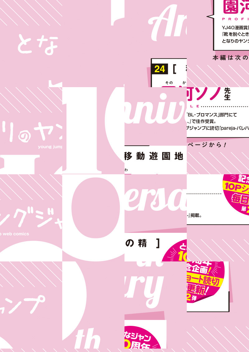 YJ40漫画賞「BL・ブロマンス」部門にて『靴を脱ぐとき、』で佳作受賞。 となりのヤングジャンプに読切『pareja-パレハ-』掲載。