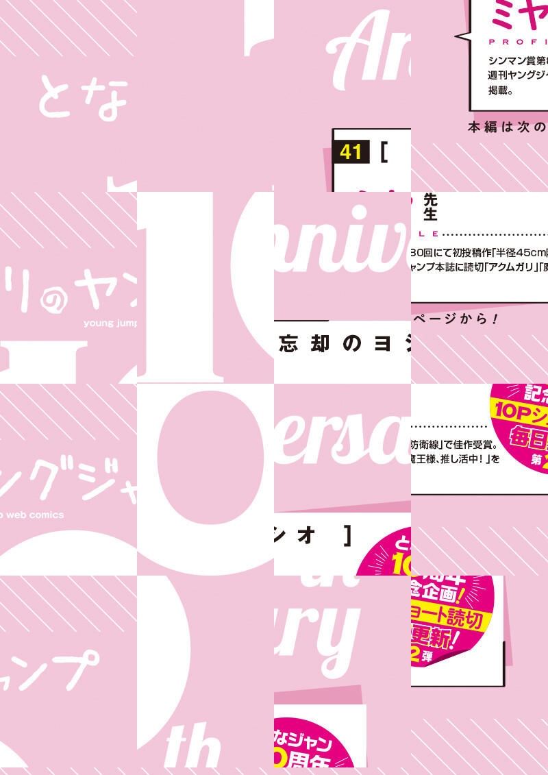 シンマン賞第80回にて初投稿作「半径45cm防衛線」で佳作受賞。 週刊ヤングジャンプ本誌に読切「アクムガリ」「魔王様、推し活中!」を掲載。