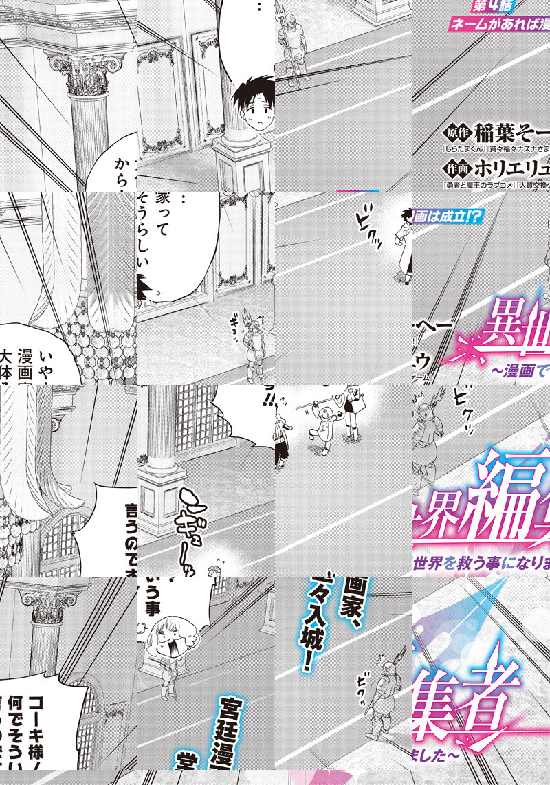 冴えない漫画編集者・一ノ瀬浩輝は、入稿を間際に控えた新連載第1話の原稿を持ったまま、異世界に召喚されてしまう。入稿に間に合わない事が確定する中、召喚士ライラに「救世主様」と呼ばれて…!?