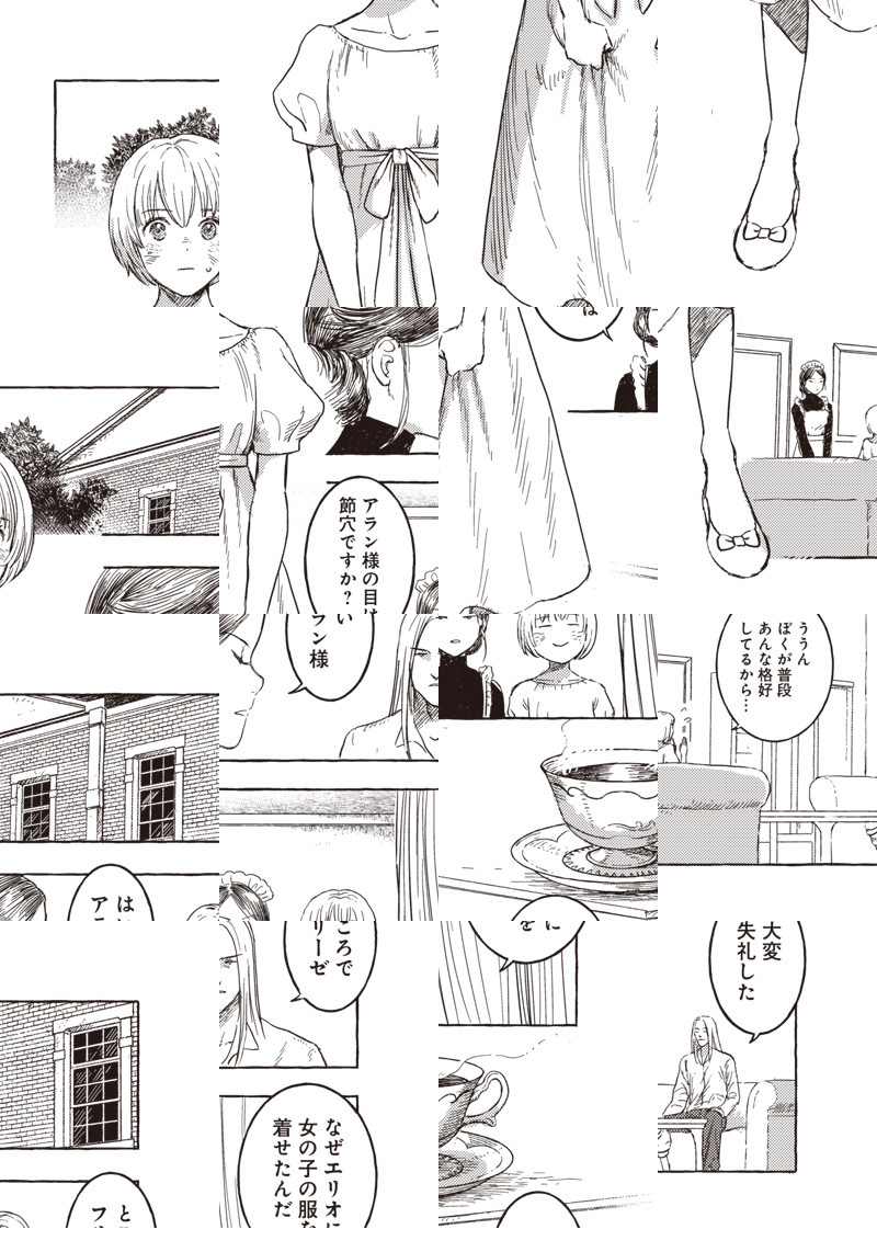 電気人形のアンジュと電気人形に育てられた人間のエリオ。自分以外の人間を知らないエリオに外の世界を見せる為、2人は旅に出る――。 未来なのに懐かしく、機械なのに温かい。近未来でスチームパンクな冒険が始まる!