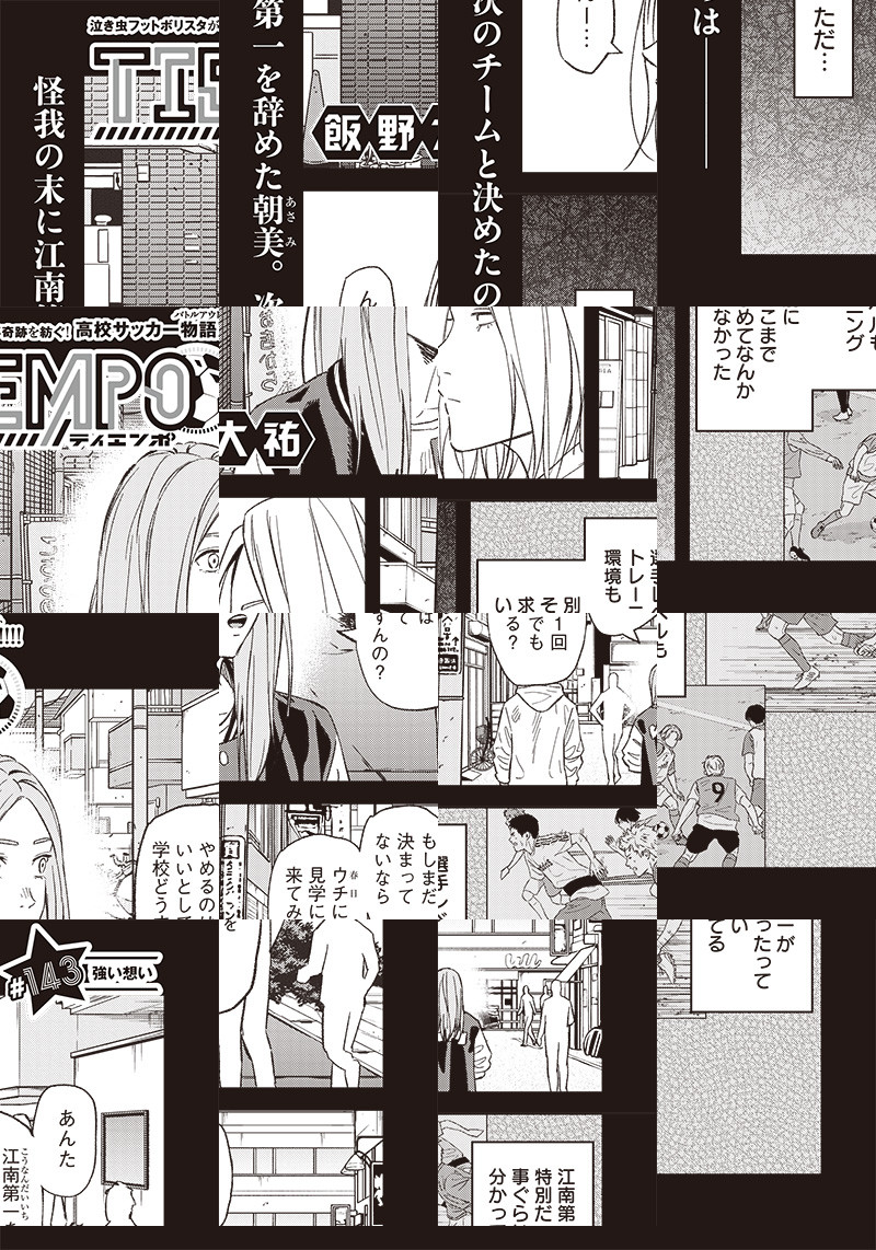 泣き虫フットボリスタが奇跡を紡ぐ、熱き高校サッカー物語開幕!! 中学校からサッカーを始め、それなりに充実した日々を送っていた瀬戸柚樹。しかし、サッカー部に1つ年上の朝美圭右が入部したことで、事態は一変。「叱責地獄」の毎日が始まることになり……!?